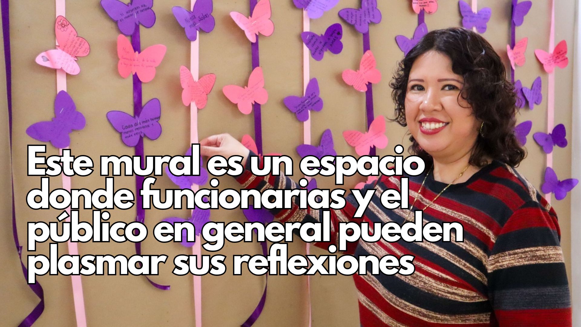 En el marco del Día Internacional de la Mujer, se ha instalado un mural de mariposas en el sexto piso del edificio Héroes de la Revolución. Este mural es un espacio donde funcionarias y el público en general pueden plasmar sus reflexiones sobre el valor de las mujeres en la sociedad.