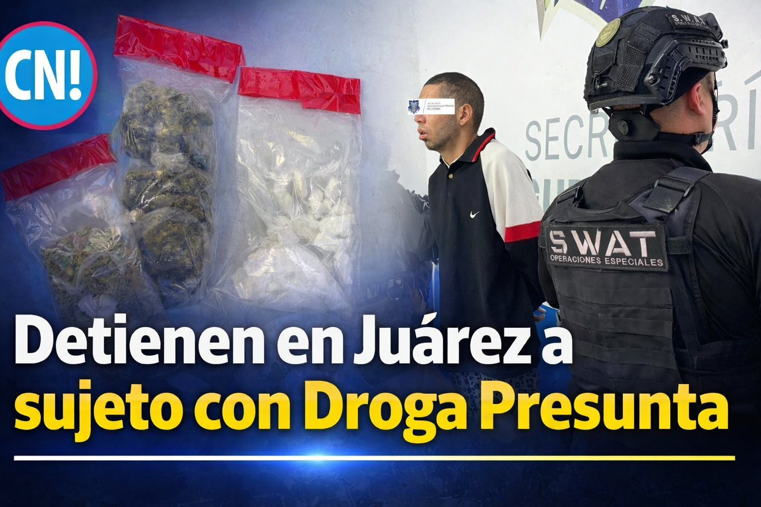 Ciudad Juárez, Chih — Elementos de la Fuerza Especial SWAT de la Secretaría de Seguridad Pública del Estado (SSPE) detuvieron a un hombre en posesión de presuntos narcóticos durante un operativo de vigilancia realizado en la colonia Juárez Nuevo, como parte de las acciones permanentes de prevención y disuasión del delito en zonas urbanas de Ciudad Juárez.