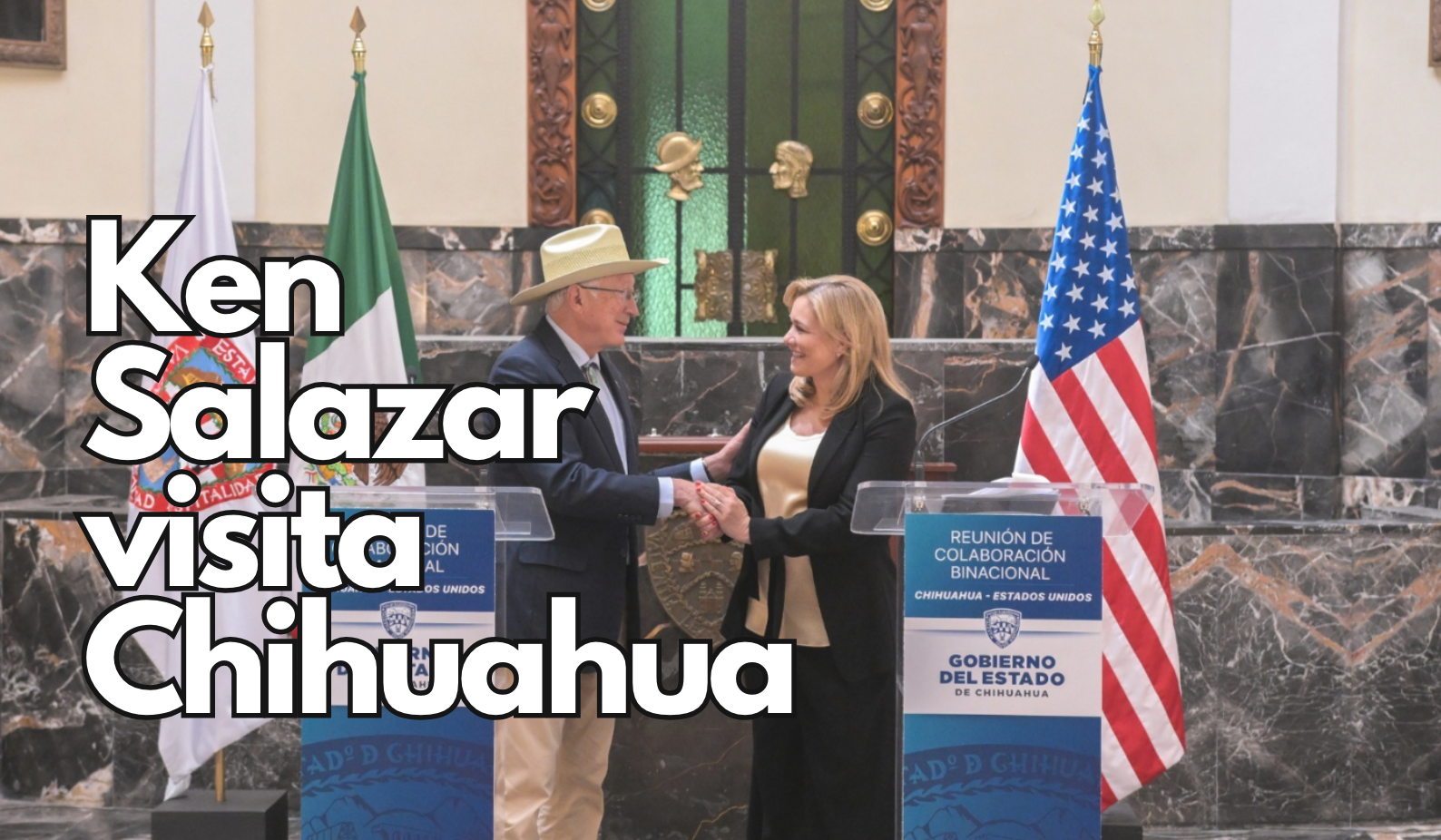 El embajador de Estados Unidos en México, Ken Salazar, sostuvo una reunión con la gobernadora de Chihuahua, Maru Campos, en el Palacio de Gobierno, donde abordaron temas clave para el desarrollo del estado. Tras el encuentro, Salazar subrayó la disposición de Norteamérica para trabajar de manera conjunta en materia de seguridad e inversión.