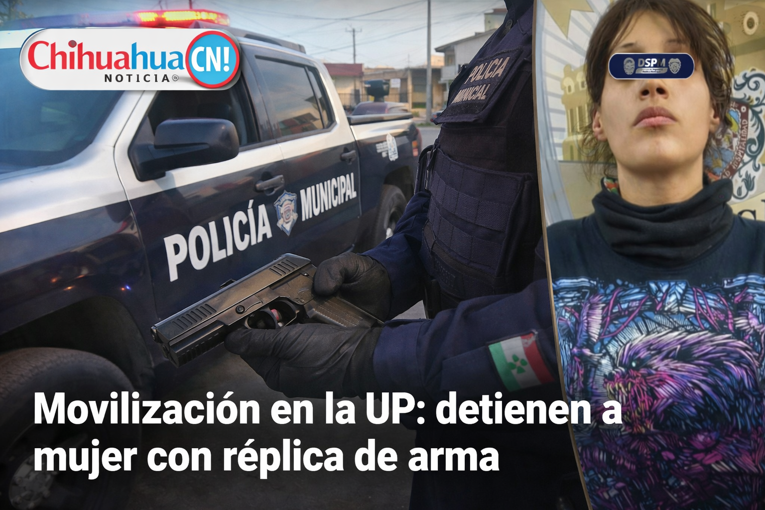 Movilización en la UP: detienen a mujer con réplica de arma en Chihuahua