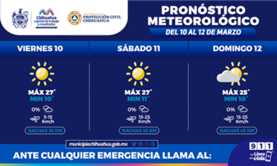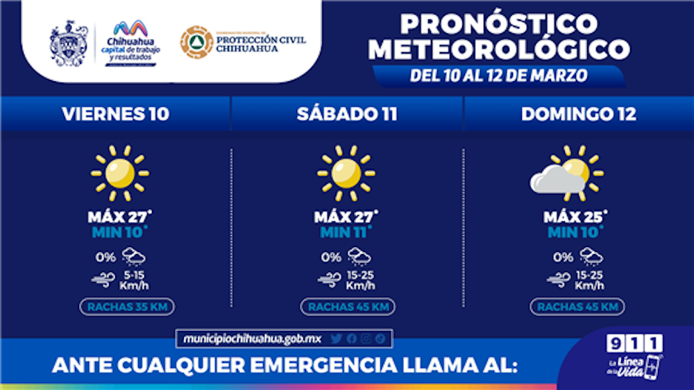 La Coordinación Municipal de Protección Civil, informa que este fin de semana, 10 al 12 de marzo, se prevén temperaturas máximas de 27°C y mínimas de...