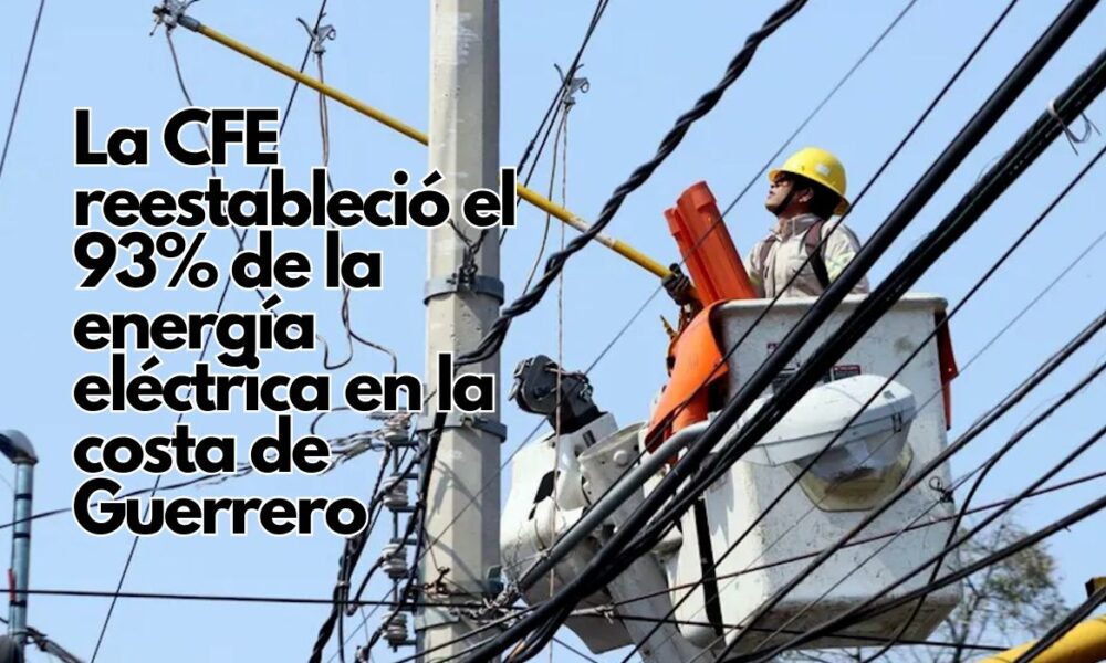 La estatal eléctrica de México, Comisión Federal de Electricidad (CFE), restableció el 93 % de la infraestructura eléctrica en la costa del sureño estado mexicano de...