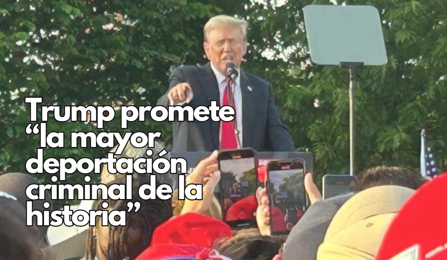 Entre gritos de “Send them back” y “Build the wall”, Trump prometió “la mayor deportación criminal de la historia” e incluso señaló que los migrantes “están creando un ejército desde dentro” porque “suelen tener buen físico, entre 19-25 años, casi todos son hombres, y están en edad de luchar”.